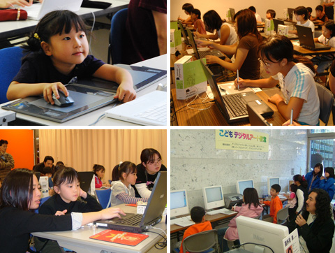 東京・横浜市内を中心にこども達のデジタルアートやコンピュータグラフィックスに関心をもってもらうためにデジコンフェスタ横浜のプレイベントとして「こどもデジタルアート教室」を開催しています。こども達の感性を磨くこともジョイントワークスの大切な役割なのです。
